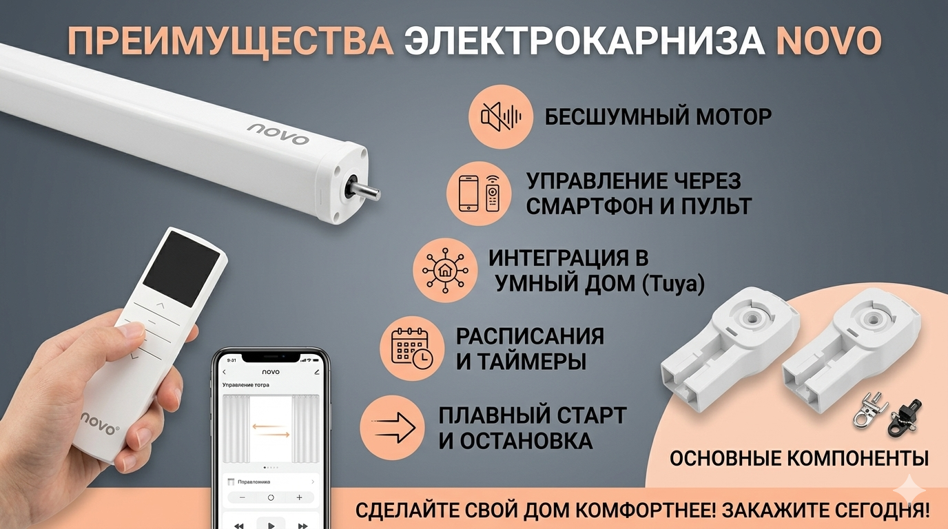 - Умный дом в вашем телефоне: Управляйте шторами через приложение (iOS/Android), настраивайте сценарии по времени или уровню солнца. Поддерживается интеграция с Google Home и Apple HomeKit.